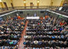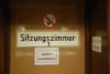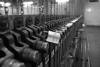| Das Podium für die Redner. | Ein Blick von oben auf die vielen Stühle. | Die Stühle und das Podium. | Eine Erinnerung an meine erste Grubenfahrt. |