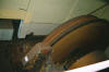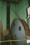 | Das mächtige Antriebs-aggregat. | Erneut die Treibscheibe. | Schwere Bremsbacken. | Der Stand des Förder-maschinisten. |