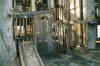 | Blick nach oben Richtung Fördergerüst. | Gesamtansicht der Rückseite. | Muster im Glas. | Die obere Etage der Hängebank. |