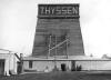 | Das Teufgerüst nach der Fertigstellung. | Blick nach oben durch den Turm. | Wem gehört die Zeche wohl...? | Blick zur späteren Hängebank. |