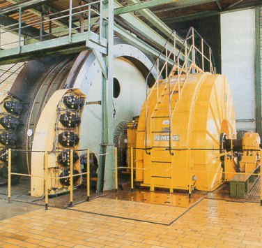 Fördermaschine (Koepe-Förderung) sehen, wie sie heute üblicherweise in